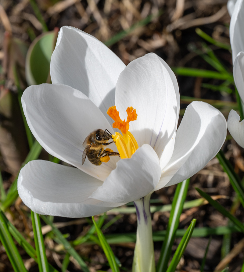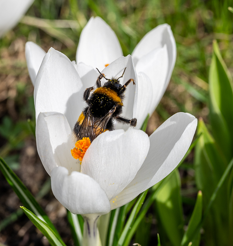 Mit den ersten warmen Sonnenstrahlen öffnen sich die Krokusse. Als ob sie es geahnt hätten, sind auch sofort die ersten Bienen und Hummeln da und freuen sich über Pollen und Nektar.